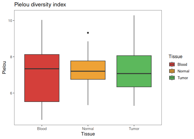 ggplot(shannon, aes(x = Tissue, y = shannon, fill = Tissue)) +