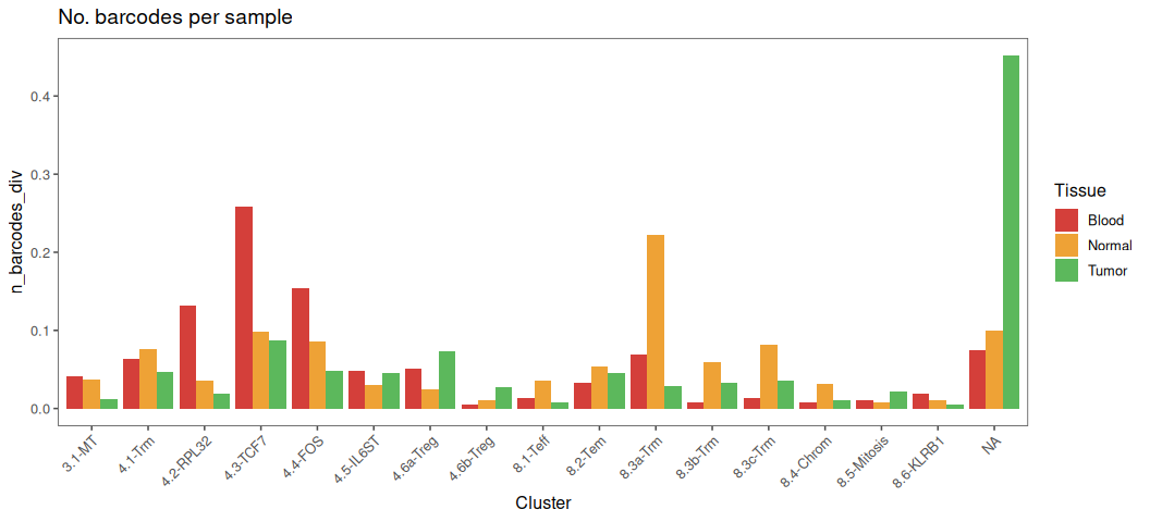 # By default, row/colnames are repertoire_id; for readable plots, map to Tissue/Cluster