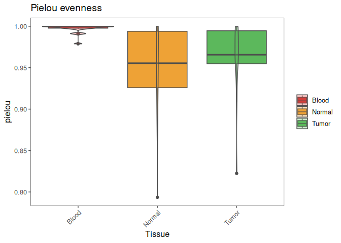 # 4. Pielou's evenness (normalized entropy, 0 = dominated, 1 = perfectly even)